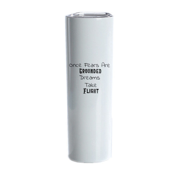 20 oz Stainless Steel Skinny Tumbler with Lid and Straw features double-wall vacuum insulation with a clear sliding lid and straw; keeps your beverages hot for three hours or cold for ten hours.